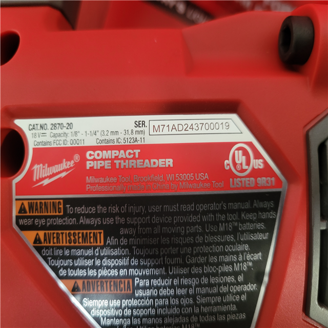 CALIFORNIA NEW MILWAUKEE COMPACT PIPE THREADER W/ONE-KEY WITH 1/2-1/4 COMPACT DIE HEADS Includes (2) Batteries Charger & Hard Case
