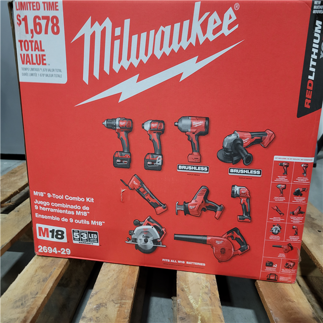 CALIFORNIA NEW MILWAUKEE M18 9-TOOL COMBO KIT (2 BATTERIES 1 CHARGER AND BAG INCLUDED)