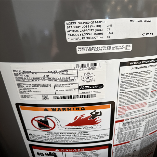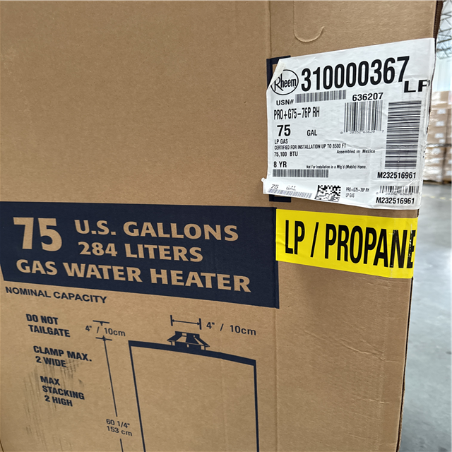 California NEW Rheem 75 Gallons Propane Gas Water Heater & AO Smith ProLine Commercial Grade 40-Gallon Natural Gas Water Heater