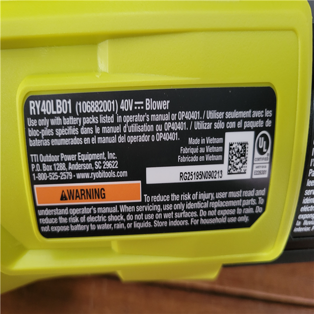 California NEW Ryboi 40V 550 CFM Blower Kit Includes (1) Battery & Charger