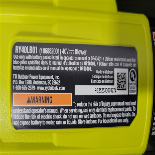 California NEW Ryobi 40V 550 CFM Blower includes (1) Battery & Charger