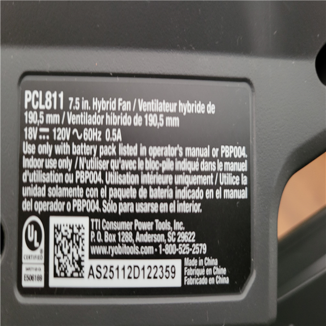 California NEW Ryobi One+ 18V Hybrid 7.5 Fan (Tool Only)