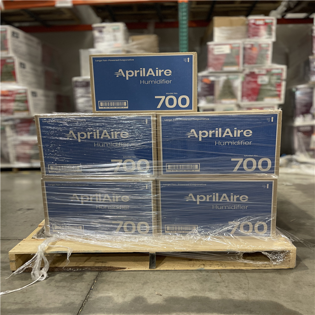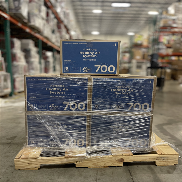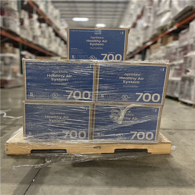 DALLAS LOCATION- AprilAire Model 700 18 gal. for up to 5 300 sq. ft. Whole-House Fan-Powered Evaporative Humidifier with Digital Control PALLET- (9 UNITS)