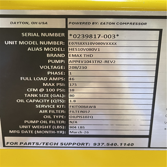 DALLAS LOCATION- AS-IS EMAX 80 Gal. 10 HP V4 1-Phase Silent Air 175 PSI Electric Air Compressor