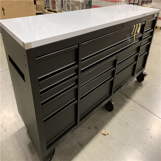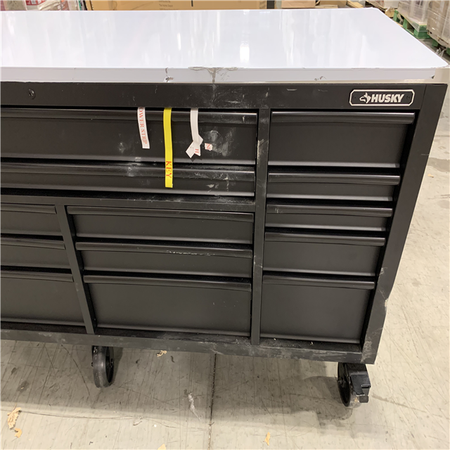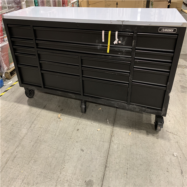 DALLAS LOCATION - AS-IS HUSKY 84 in. W x 24 in. D 18-Drawer Heavy-Duty Mobile Workbench with Stainless Steel Top in Matte Black