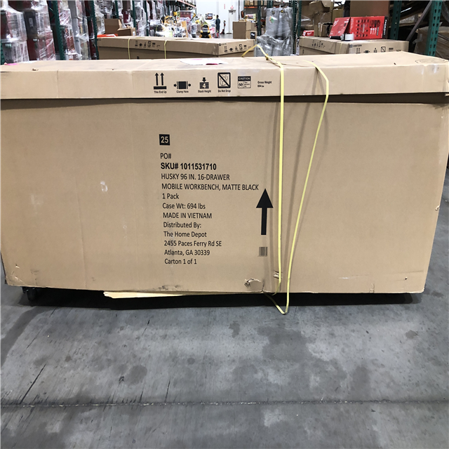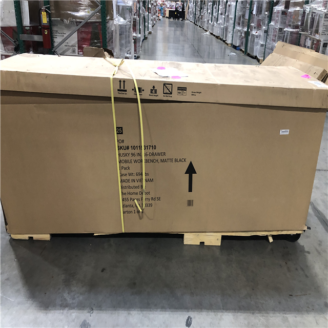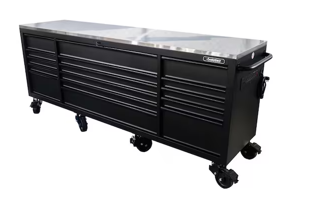 DALLAS LOCATION- AS-IS Husky 96 in. W x 24 in. D 16-Drawer Heavy-Duty Mobile Workbench with Stainless Steel Top in Matte Black