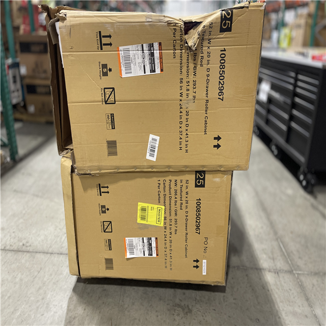 DALLAS LOCATION - AS-IS Husky Heavy-Duty 52 in. W x 20 in. D 9-Drawer Matte Red Rolling Tool Cabinet (LOT OF 2)