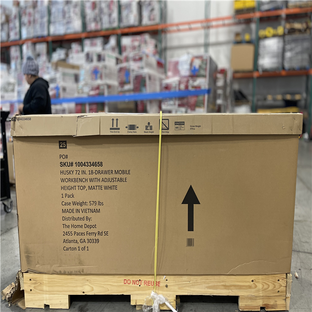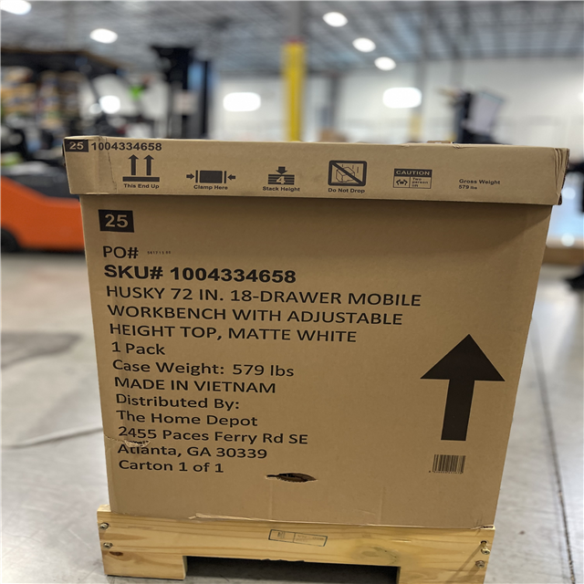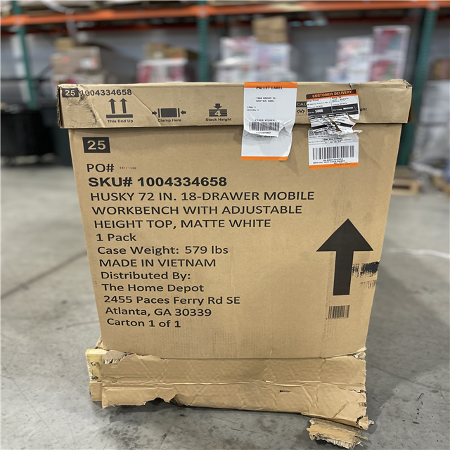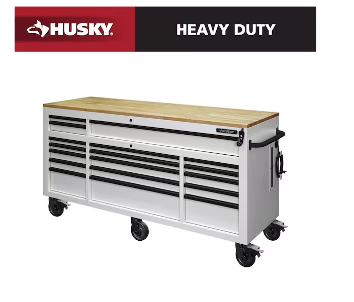 DALLAS LOCATION -AS-IS Husky Tool Storage 72 in. W x 24 in. D 18-Drawer Heavy Duty Adjustable Height Mobile Workbench Cabinet in Matte White