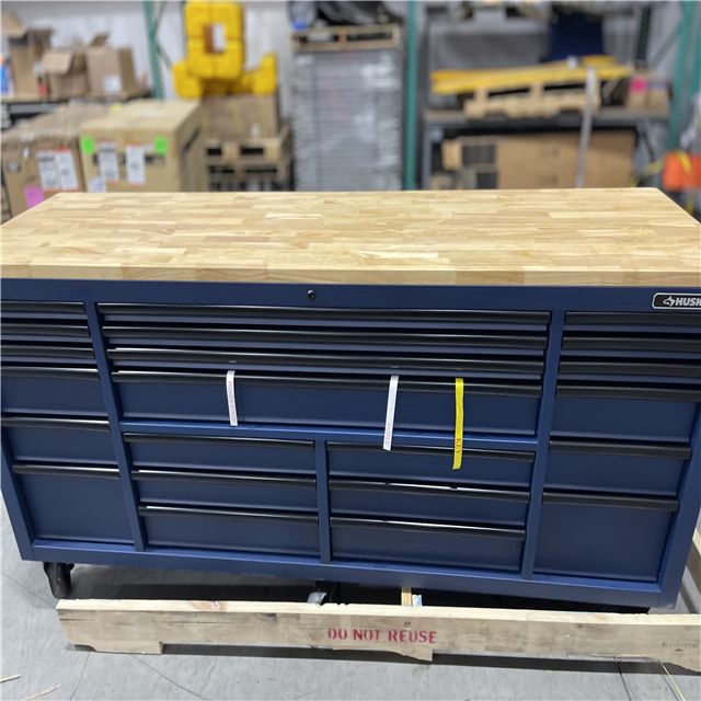 DALLAS LOCATION- AS-IS Husky Tool Storage Heavy Duty 84 in. W x 24 in. D Matte Blue Mobile Workbench Cabinet