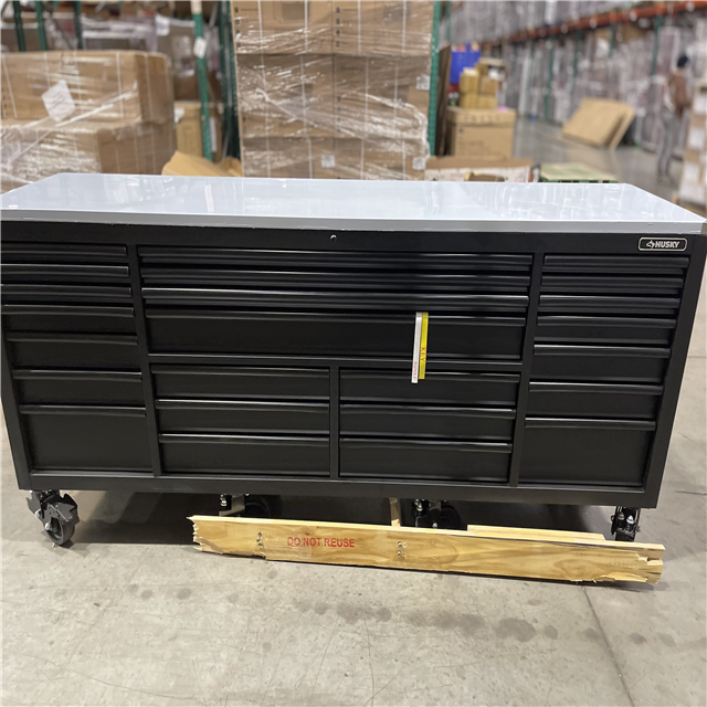DALLAS LOCATION - AS-IS Husky Tool Storage Heavy Duty 96 in. W x 24 in. D Matte Black Mobile Workbench Cabinet with Stainless Steel Top
