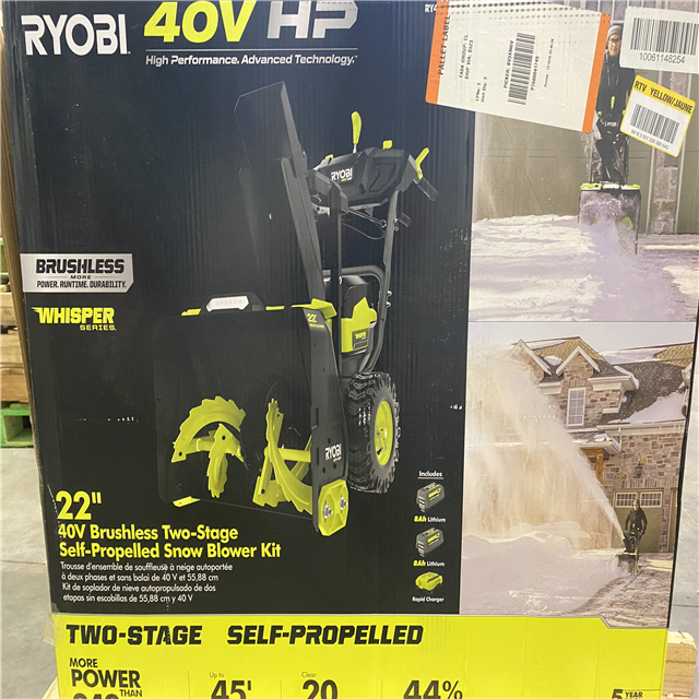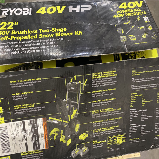 Dallas Location - As-Is RYOBI 40V HP Brushless Whisper Series 22 2-Stage Cordless Electric Self-Propelled Snow Blower - (2) 8 Ah Batteries & Charger