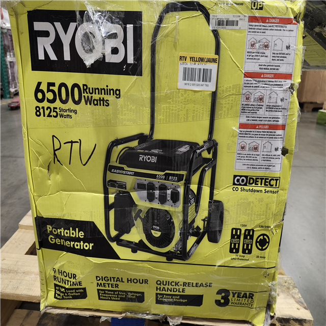 Dallas Location - As-Is RYOBI 8125-Watt Gasoline Powered Portable Generator