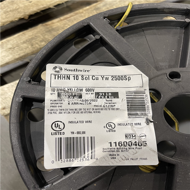 DALLAS LOCATION - AS-IS Southwire 2,500 ft. 10 Yellow Solid CU THHN Wire (4 SPOOLS)(SEE NOTES)