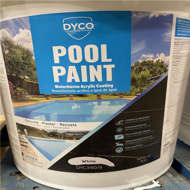 DALLAS LOCATION -DALLAS LOCATION -Dyco Pool Paint 5 Gal. 3150 White Semi-Gloss Acrylic Exterior Paint PALLET- (10 UNITS)