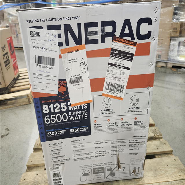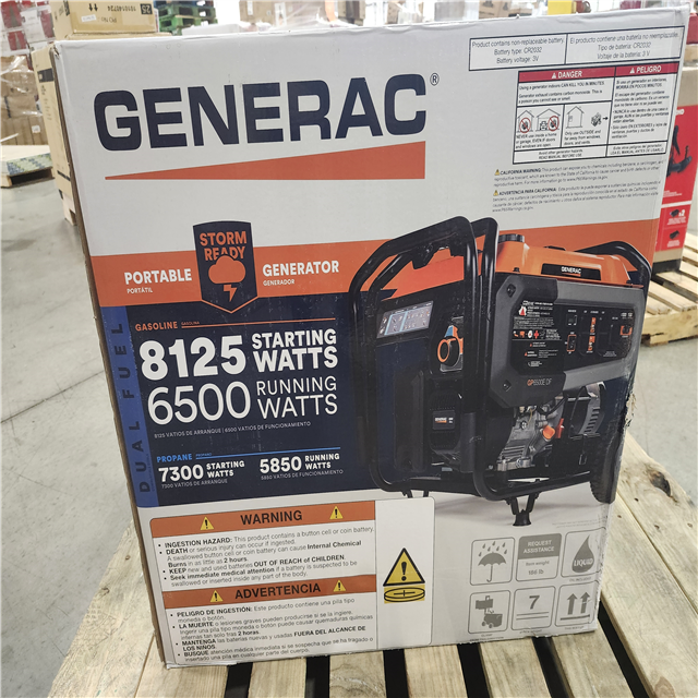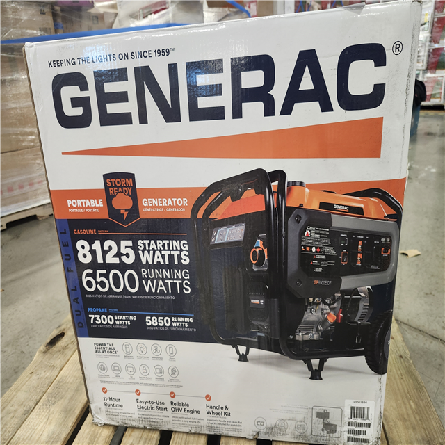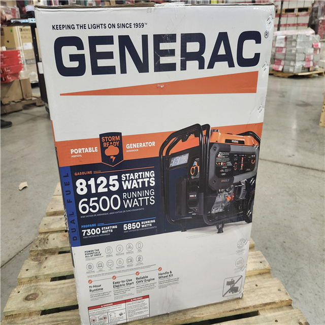 DALLAS LOCATION - Generac 8125/6500-Watt - Electric Start - Dual Fuel Gasoline/Propane -COSense - Portable Generator