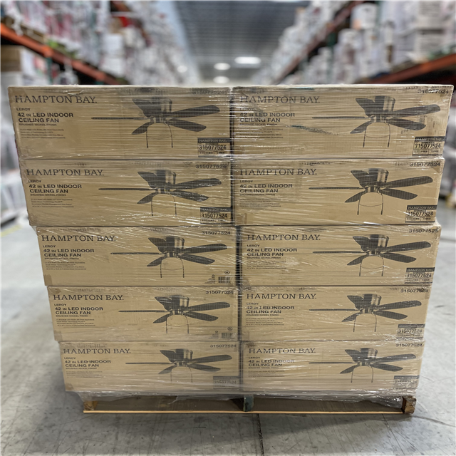 DALLAS LOCATION - Hampton Bay Leroy 42 LED Brushed Nickel Ceiling Fan With Light PALLET-(40 UNITS)