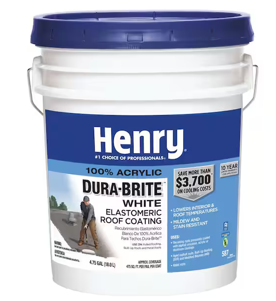 DALLAS LOCATION - Henry 587 Dura-Brite White 100% Acrylic Elastomeric Reflective Roof Coating 4.75 gal. PALLET-(12 UNITS)