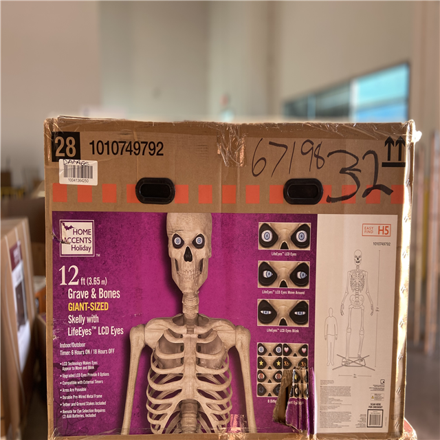 DALLAS LOCATION - Home Accents Holiday 12 ft. Grave & Bones Giant-Sized Skelly with LifeEyes™ LCD Eyes H5