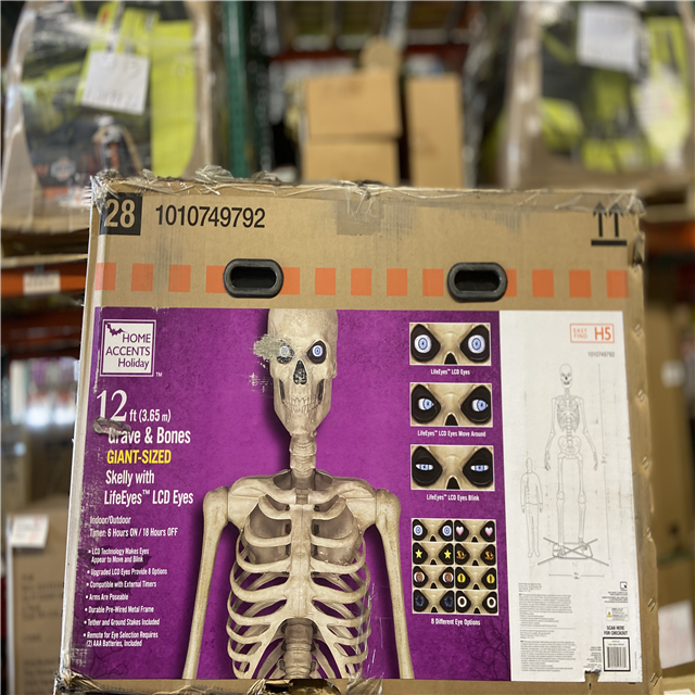 DALLAS LOCATION - Home Accents Holiday 12 ft. Grave & Bones Giant-Sized Skelly with LifeEyes™ LCD Eyes H5