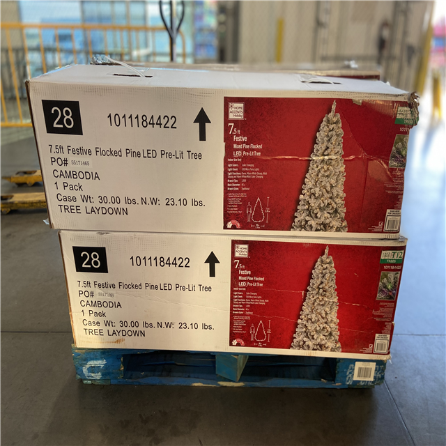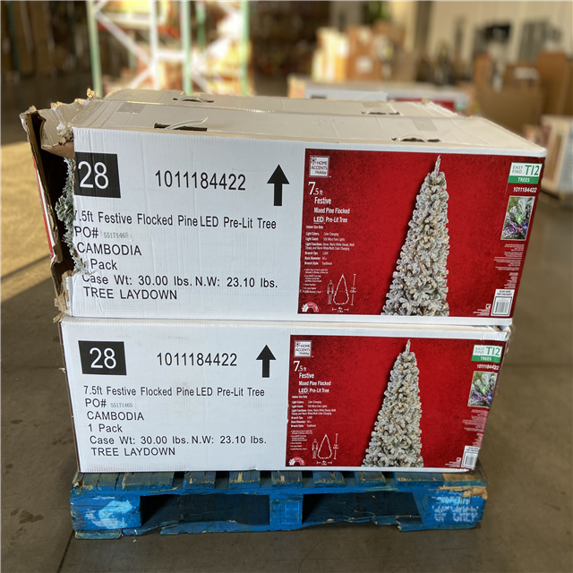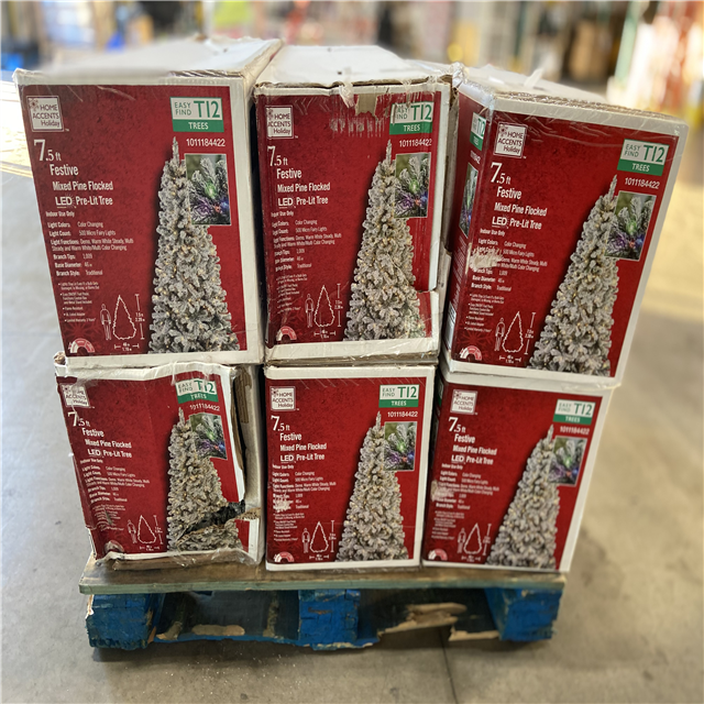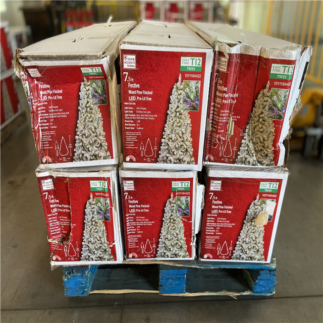 DALLAS LOCATION - Home Accents Holiday 7.5 ft. Festive Mixed Pine Flocked LED Pre-Lit Artificial Christmas Tree T12 - 6 UNITS