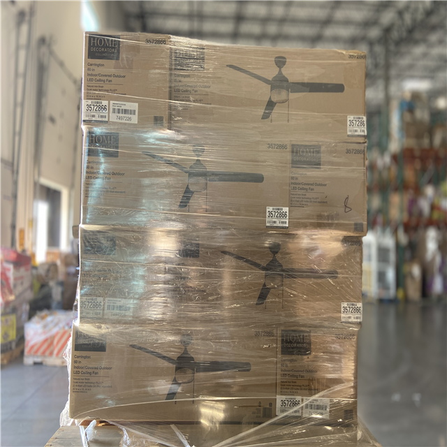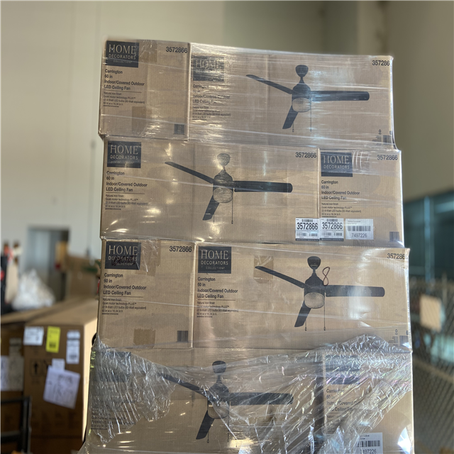 DALLAS LOCATION - Home Decorators Collection Carrington 60 in. Indoor/Outdoor Ceiling Fan with LED Dome Light Kit, Natural Iron with Black Blades (16 UNITS))