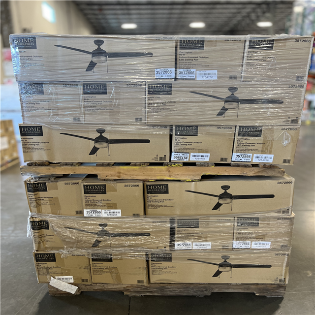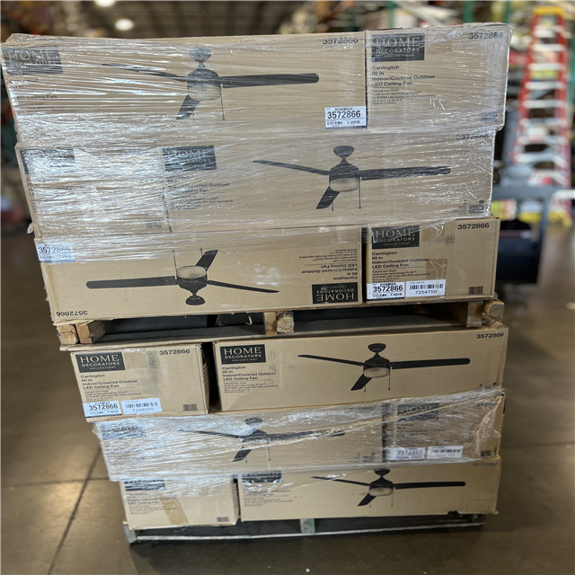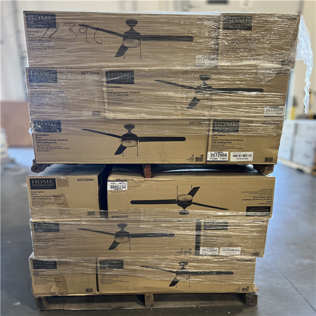 DALLAS LOCATION- Home Decorators Collection Carrington 60 in. Indoor/Outdoor Ceiling Fan with LED Dome Light Kit Natural Iron with Black Blades PALLET -(36 UNITS)