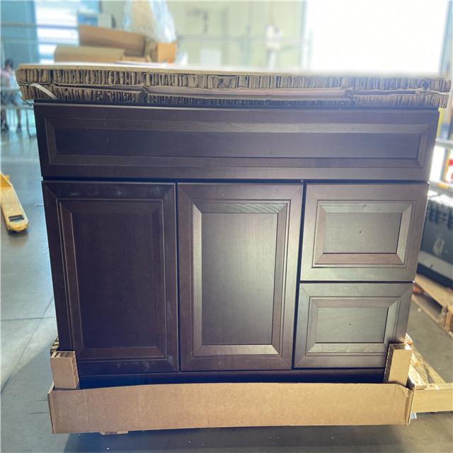 DALLAS LOCATION - Home Decorators Collection Sedgewood 48.5 in. W x 18.75 in. D x 34.375 in. H Single Sink Bath Vanity in Dark Cognac with Arctic Solid Surface Top