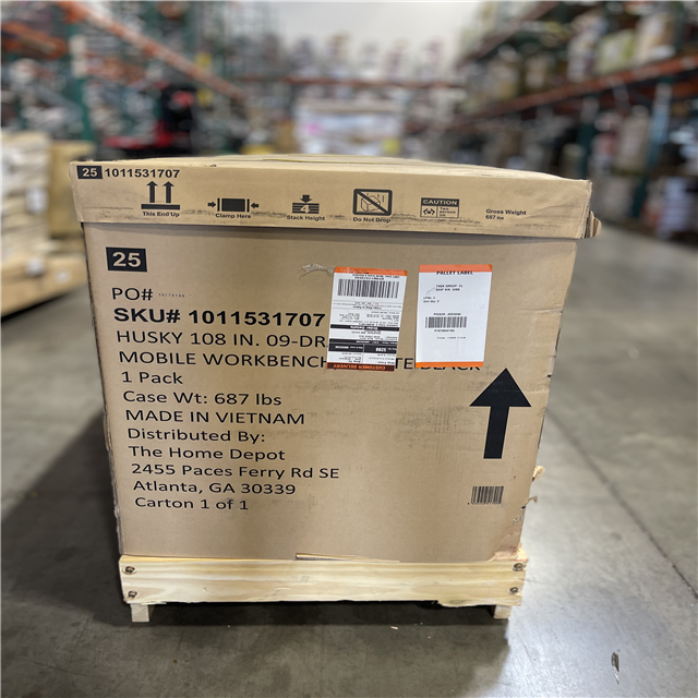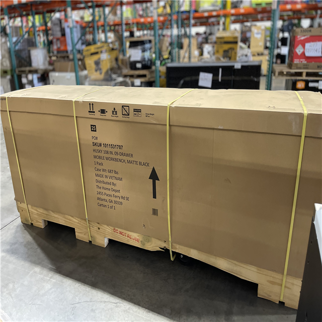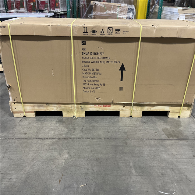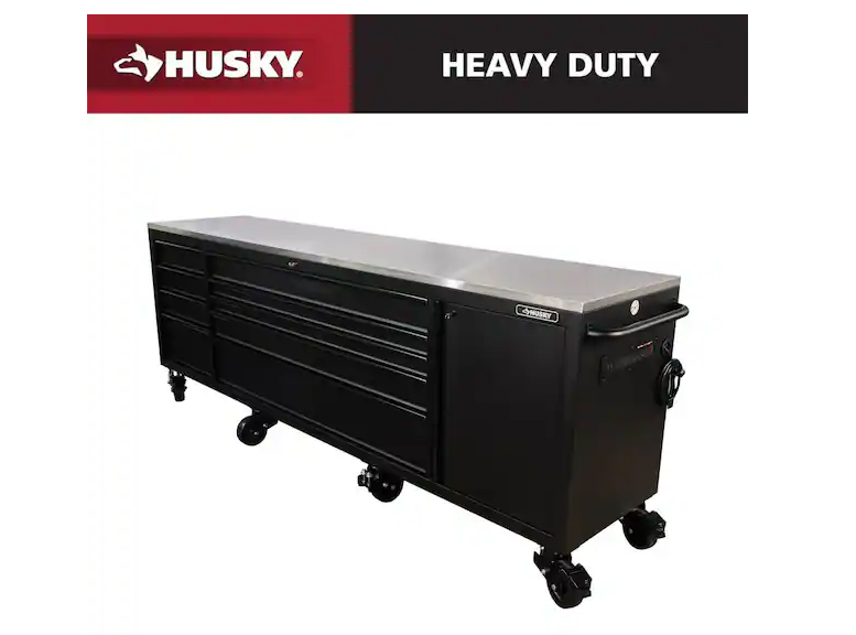 DALLAS LOCATION - Husky 108 in. W x 24 in. D 9-Drawer Heavy-Duty Mobile Workbench with Stainless Steel Top in Matte Black