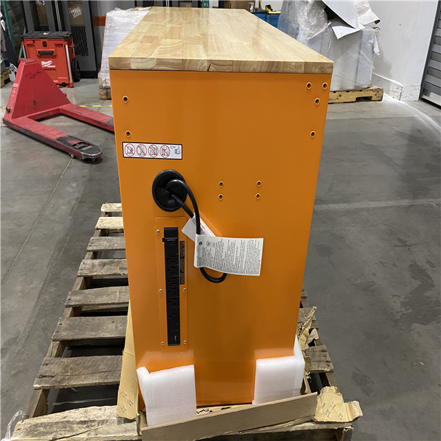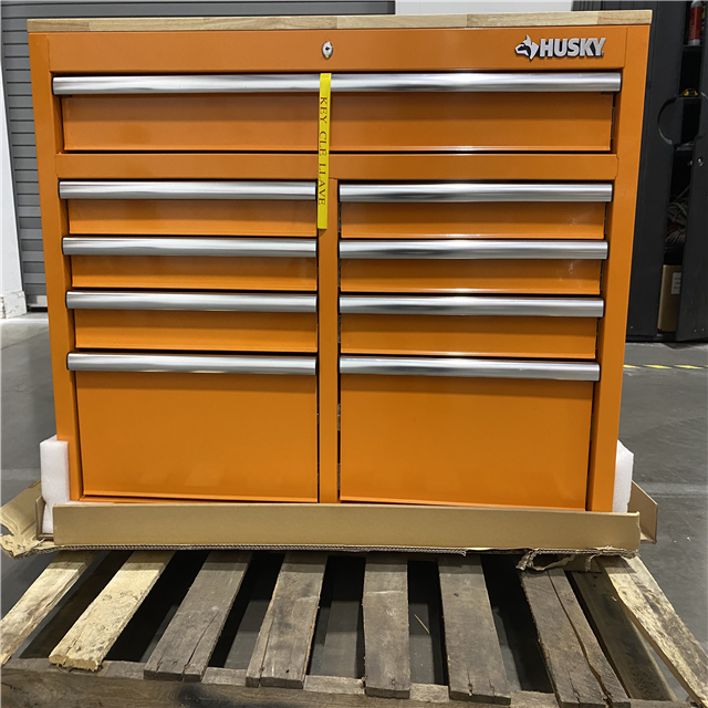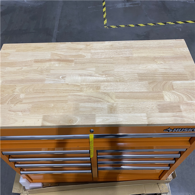 DALLAS LOCATION - Husky 46 in. W x 18 in. D 9-Drawer Gloss Orange Mobile Workbench Cabinet with Solid Wood Top