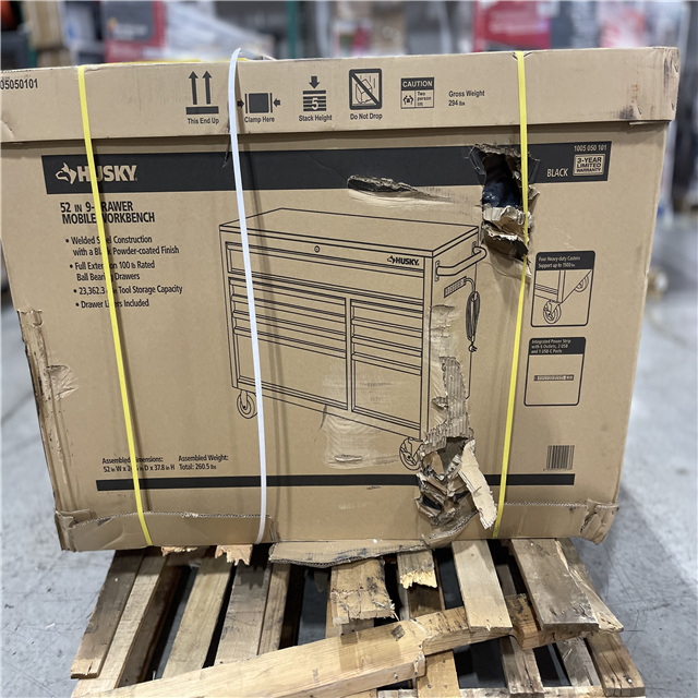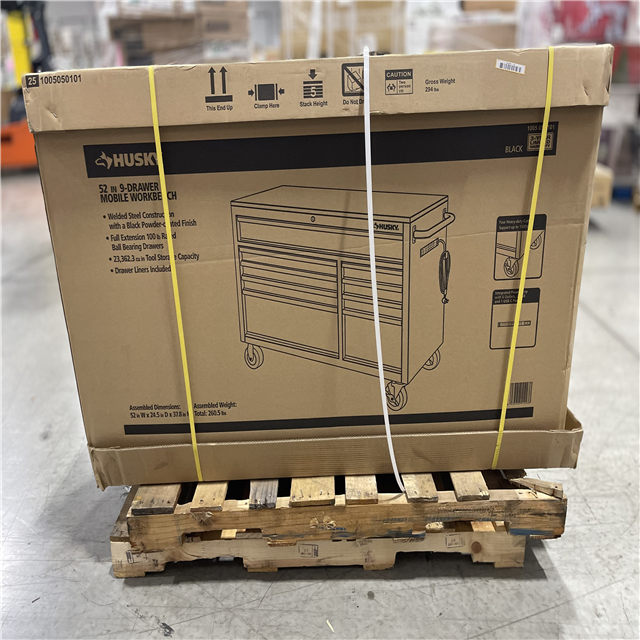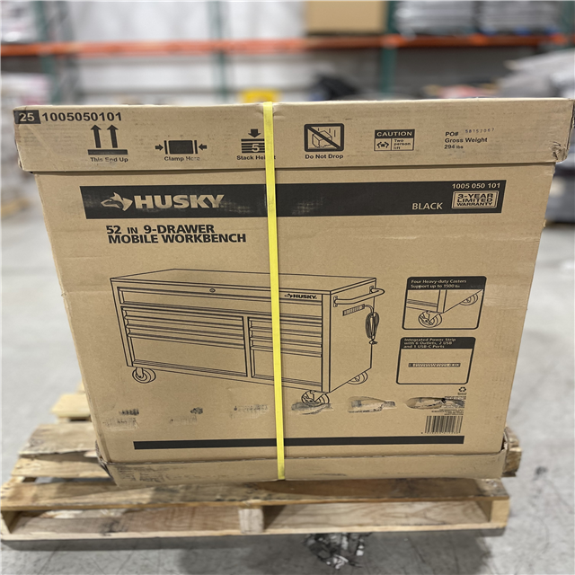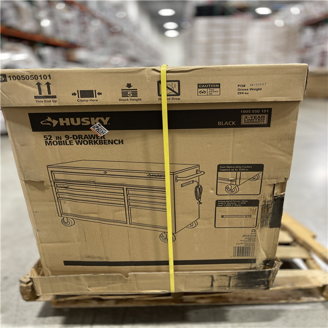 DALLAS LOCATION - Husky 52 in. W x 25 in. D Standard Duty 9-Drawer Mobile Workbench Tool Chest with Solid Wood Top in Gloss Black