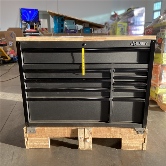 DALLAS LOCATION - Husky 56 in. W x 27.6 in. D 10-Drawer Matte Black Heavy-Duty Mobile Workbench
