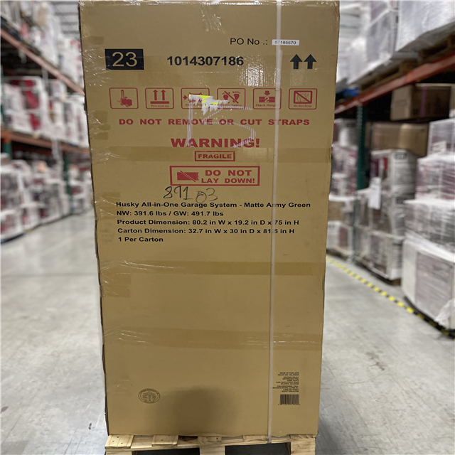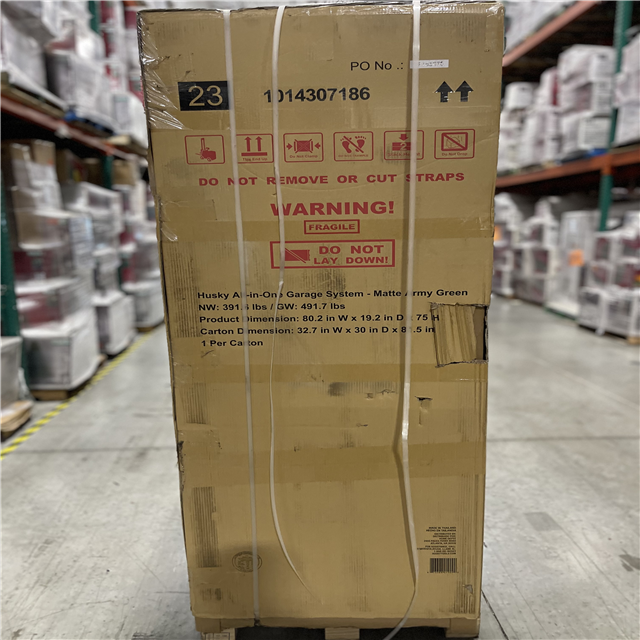 DALLAS LOCATION - Husky 80.2 in. W x 75 in. H x 19.2 in. D Steel 8-Piece Garage Storage System in Matte Army Green with Solid Wood Worktop