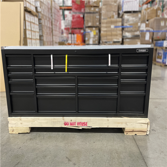 DALLAS LOCATION- HUSKY 84 in. W x 24 in. D 18-Drawer Heavy-Duty Mobile Workbench with Stainless Steel Top in Matte Black
