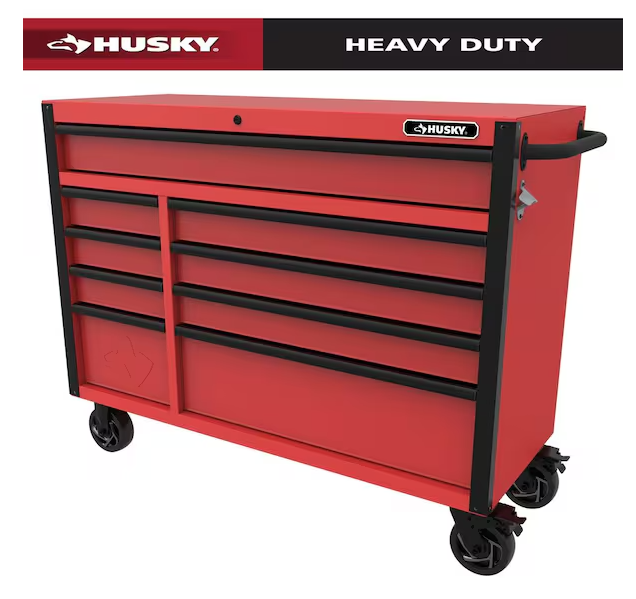 DALLAS LOCATION - Husky Heavy-Duty 52 in. W x 20 in. D 9-Drawer Rolling Tool Cabinet in Textured Red