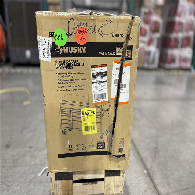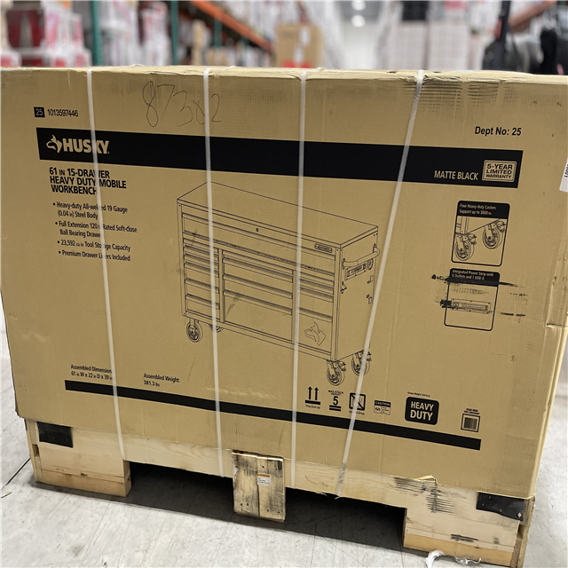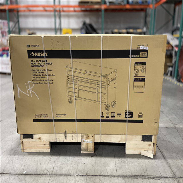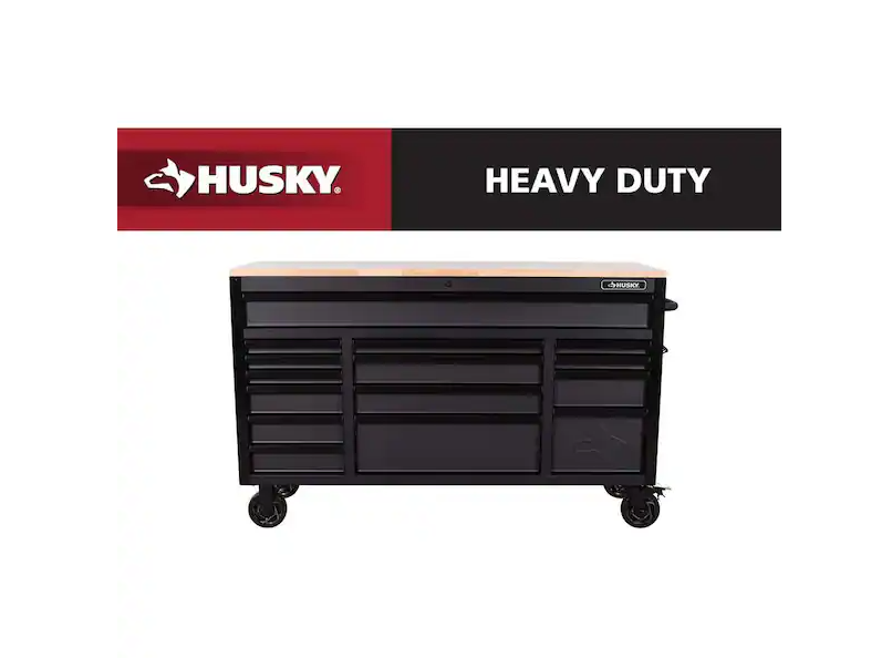 DALLAS LOCATION - Husky Heavy-Duty 61 in. W x 23 in. D 15-Drawer Matte Black Mobile Workbench Cabinet with Solid Wood Top