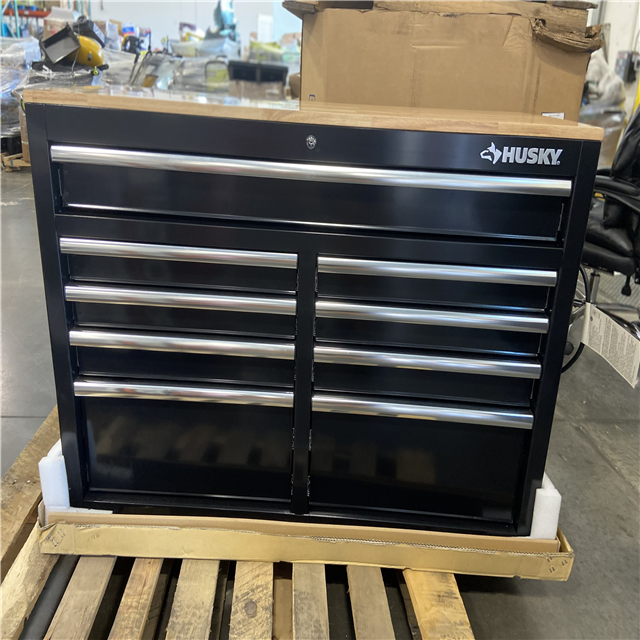 DALLAS LOCATION - Husky Tool Storage 46 in. W x 18 in. D 9-Drawer Mobile Workbench Cabinet in Gloss Black