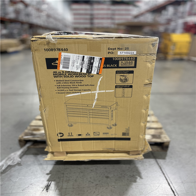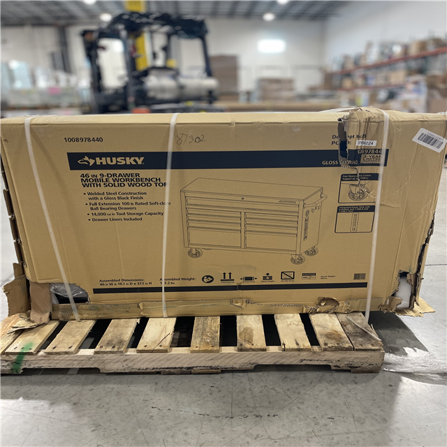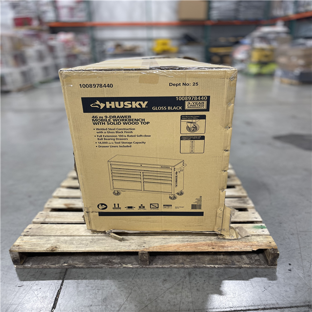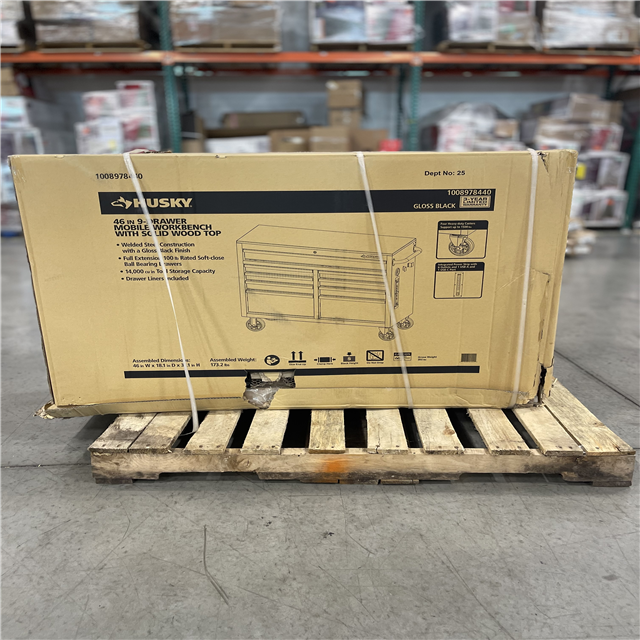 DALLAS LOCATION - Husky Tool Storage 46 in. W x 18 in. D 9-Drawer Mobile Workbench Cabinet in Gloss Black