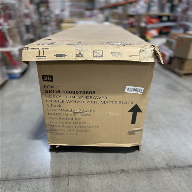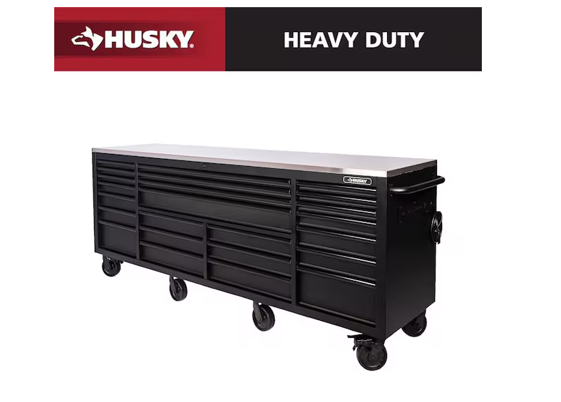 DALLAS LOCATION - Husky Tool Storage Heavy Duty 96 in. W x 24 in. D Matte Black Mobile Workbench Cabinet with Stainless Steel Top