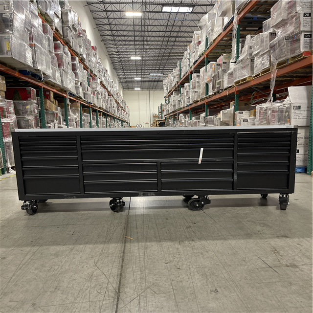 DALLAS LOCATION - Husky Tool Storage Heavy Duty 96 in. W x 24 in. D Matte Black Mobile Workbench Cabinet with Stainless Steel Top
