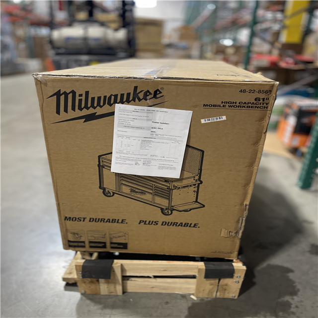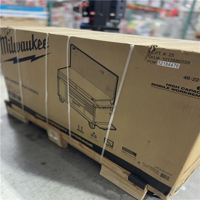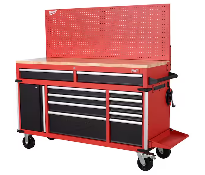 DALLAS LOCATION- Milwaukee High-Capacity 61 in. W x 22 in. D 11-Drawer Mobile Workbench Cabinet with Solid Wood Top and Pegboard