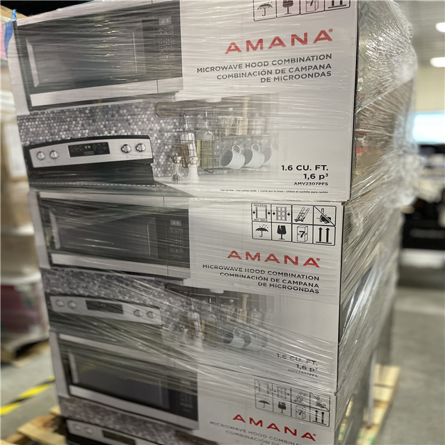 DALLAS LOCATION- NEW!- Amana 1.6 cu. ft. Stainless Steel Electric 1000-Watt Over the Range Microwave 300 Exhaust CFM PALLET (6 UNITS)