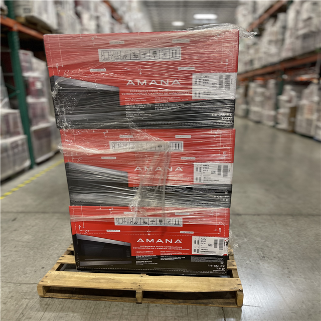 DALLAS LOCATION- NEW!- Amana 1.6 cu. ft. Stainless Steel Electric 1000-Watt Over the Range Microwave 300 Exhaust CFM PALLET (6 UNITS)