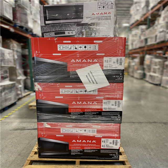 DALLAS LOCATION- NEW!- Amana 1.6 cu. ft. Stainless Steel Electric 1000-Watt Over the Range Microwave 300 Exhaust CFM PALLET (7 UNITS)