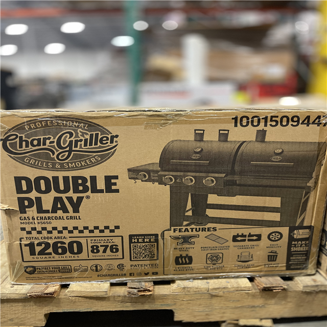 DALLAS LOCATION- NEW!- Char-Griller Double Play 1 260 sq. in. 3-Burner Gas and Charcoal Grill in Black