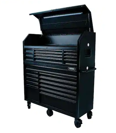 DALLAS LOCATION- NEW!- Husky 56 in. W x 22 in. D Heavy Duty 23-Drawer Rolling Tool Chest and Top Tool Cabinet Set in Matte Black
