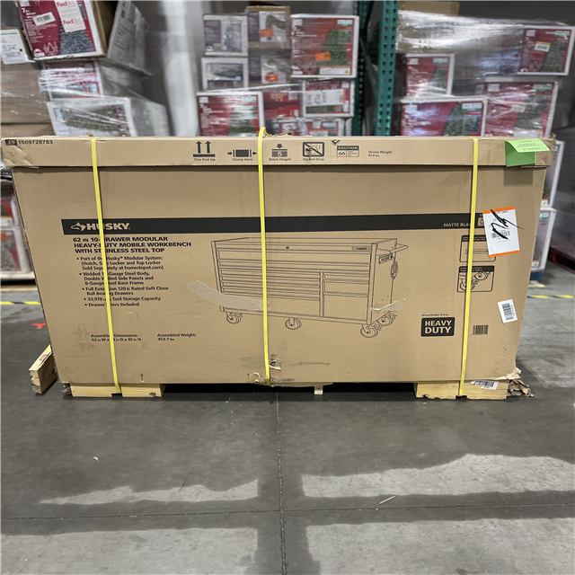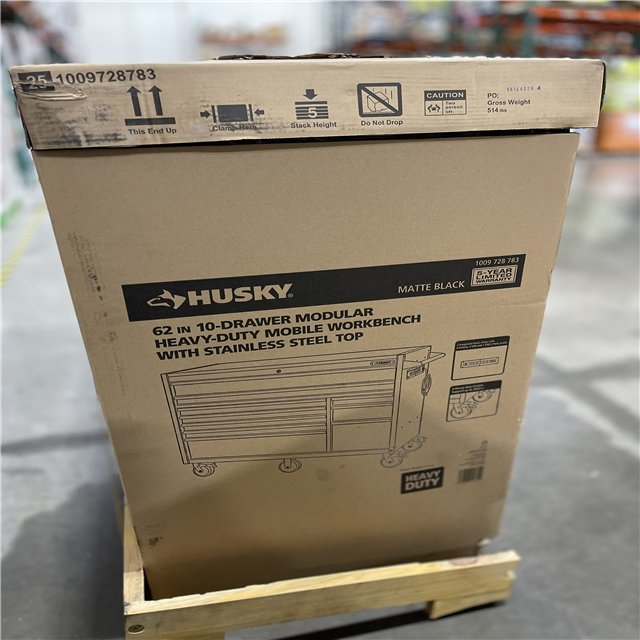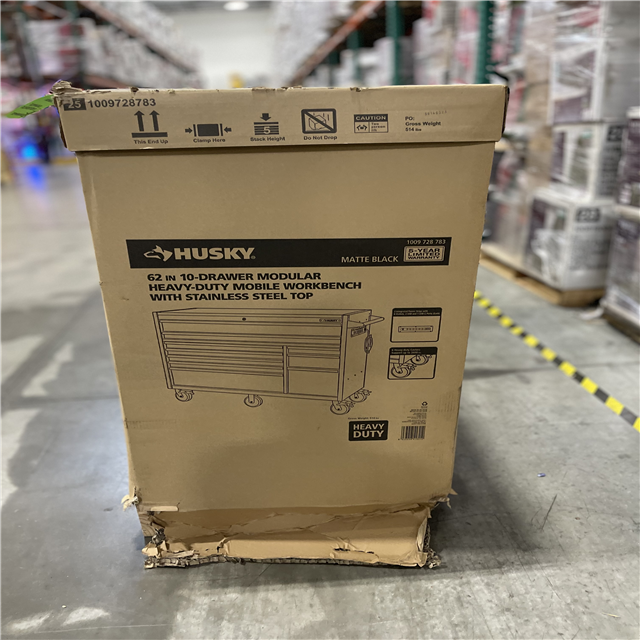 DALLAS LOCATION- NEW!- Husky Modular Tool Storage 62 in. W X 24 in. D Heavy Duty Matte Black Mobile Workbench Cabinet with Stainless Steel Top