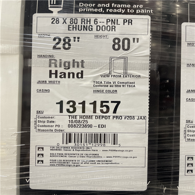DALLAS LOCATION-NEW!- Masonite 28 In. X 80 In. X 4-9/16 In. Primed 6-Panel Single Prehung Interior Door (6 UNITS)