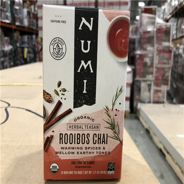 DALLAS LOCATION- NEW!- Numi Organic Rooibos Chai Tea 18 Tea Bags Red Tea with Cinnamon Allspice & Ginger Caffeine Free PALLET (600 UNITS)
