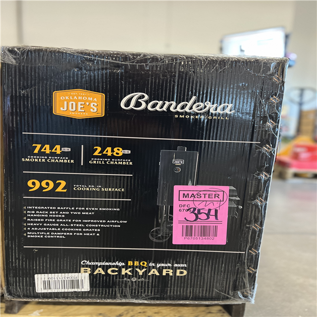 DALLAS LOCATION - OKLAHOMA JOE'S Bandera Vertical Offset Charcoal Smoker and Grill with 992 sq. in. Cooking Area in Black