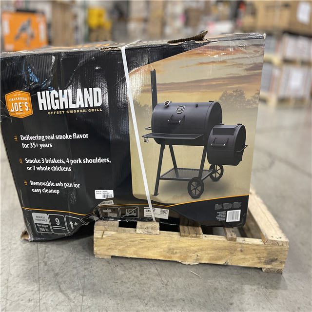 DALLAS LOCATION - OKLAHOMA JOE'S Highland Offset Charcoal Smoker and Grill with 900 sq. in. Cooking Area in Black